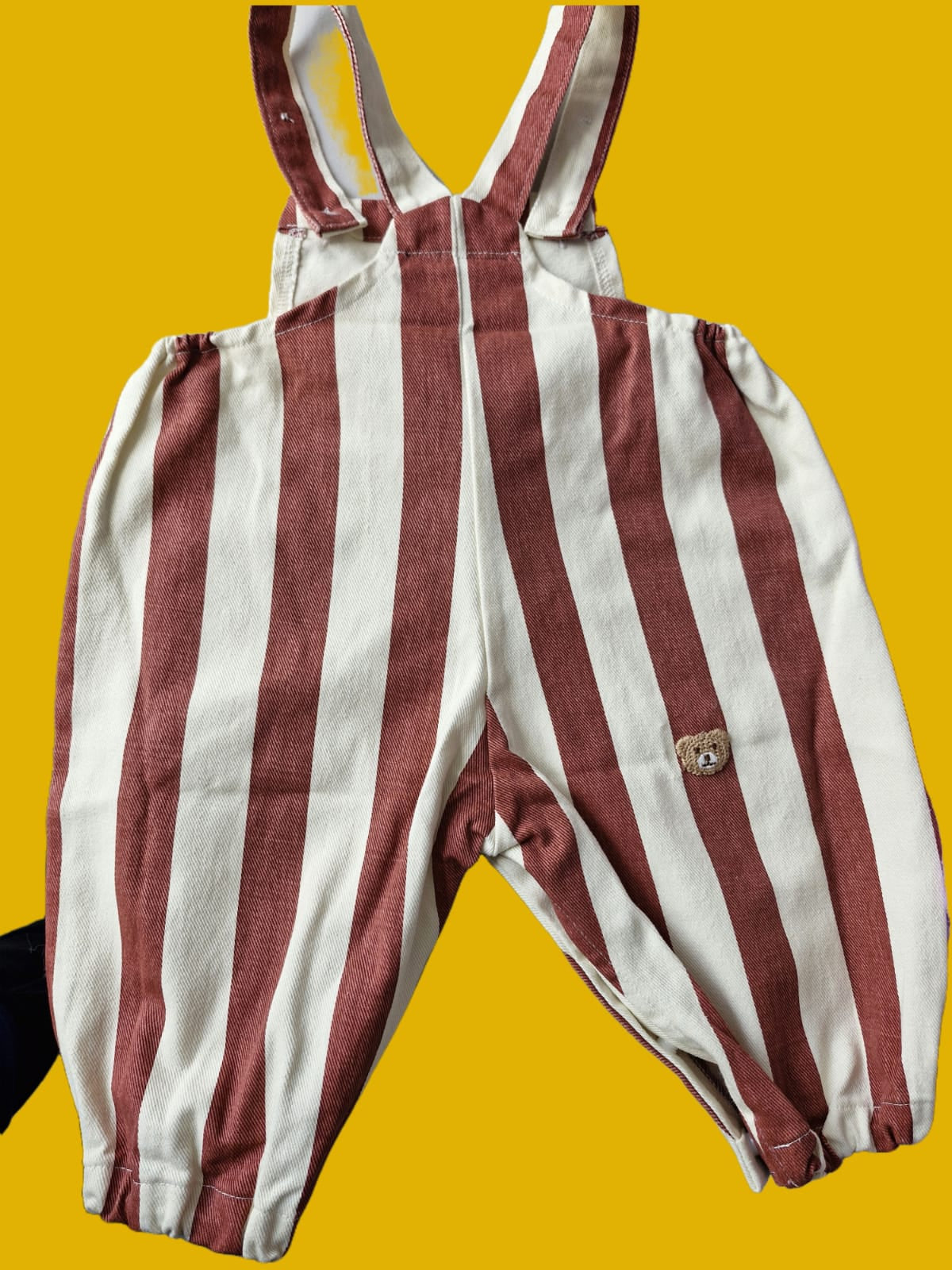 Tierno overol rayado con bonito oso de peluche al frente.